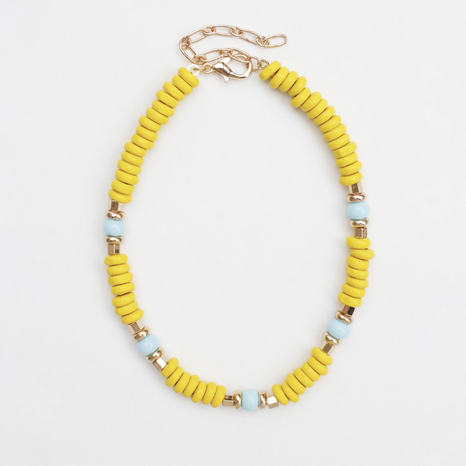 WOOD DISC BEADED NECKLACE
