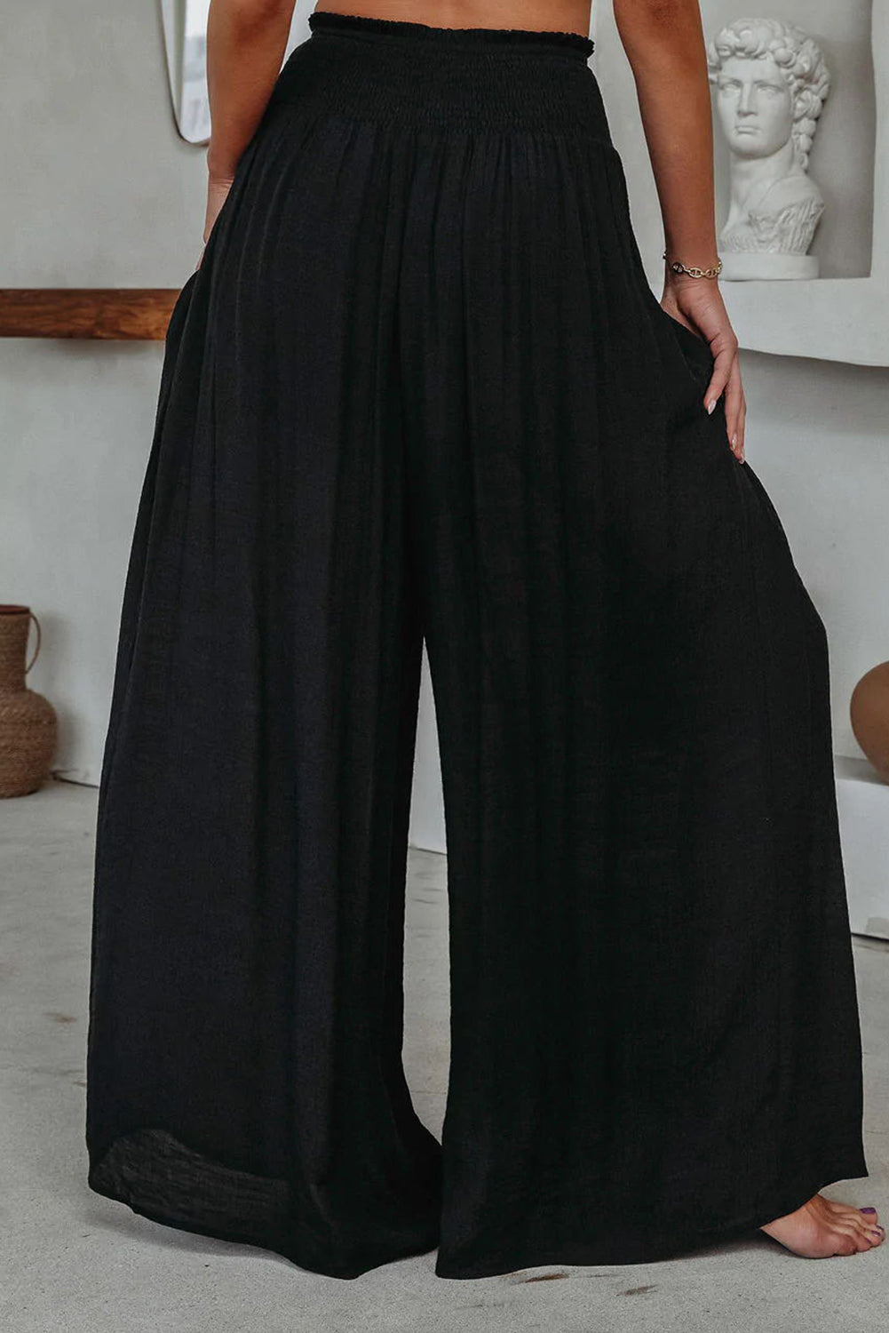 • The Red Smocked Pockets High Waisted Beach Pants are a stylish and comfortable choice for any beach day or summer outing.