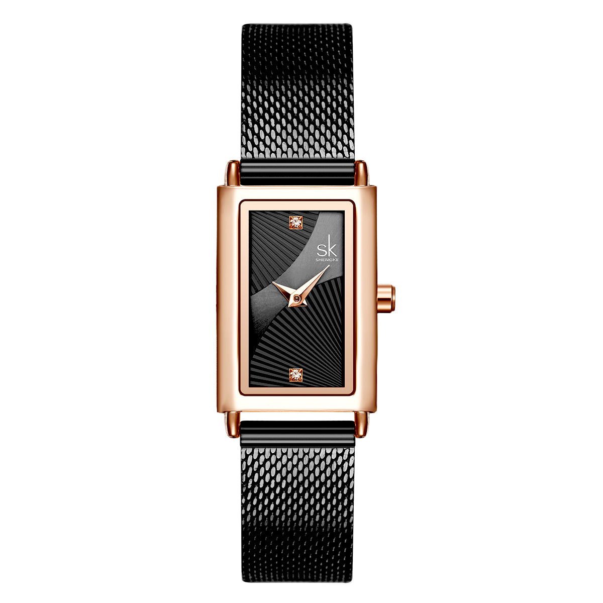 SHENGKE Women Watch Fashion Design Lady Watches Luxury Brand Square Quartz Black Wrist Watch Waterproof Reloj Mujer